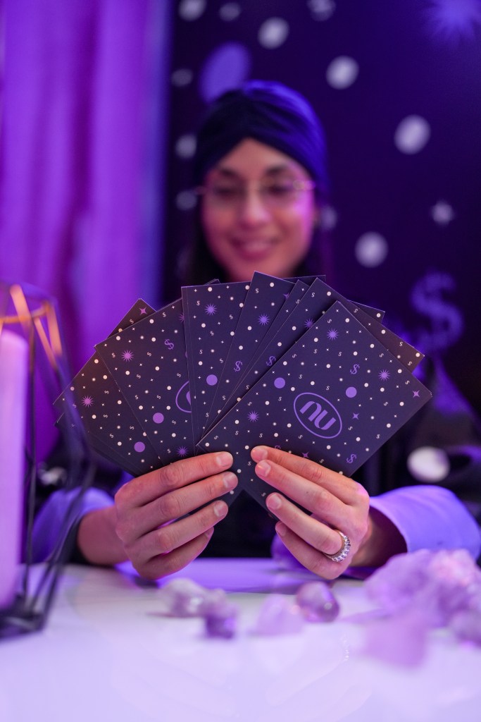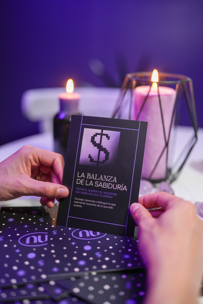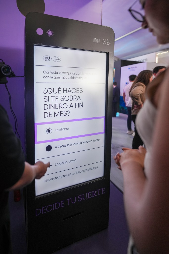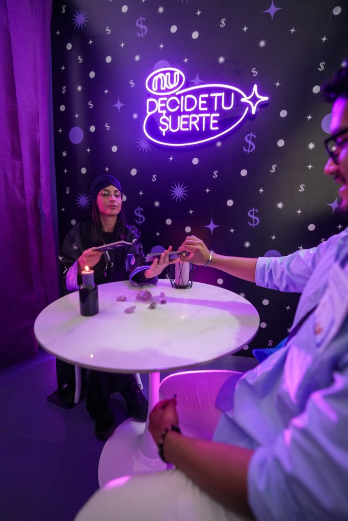 El stand de Nu en la SNEF 2025 fue uno de los más visitados por jóvenes que buscaban algo distinto: una forma original y divertida de pensar en su dinero. Y es que desde la fachada hacía una invitación a una experiencia misteriosa: luces moradas, una bola mágica y un letrero brillante que anunciaba “Decide tu $uerte”.